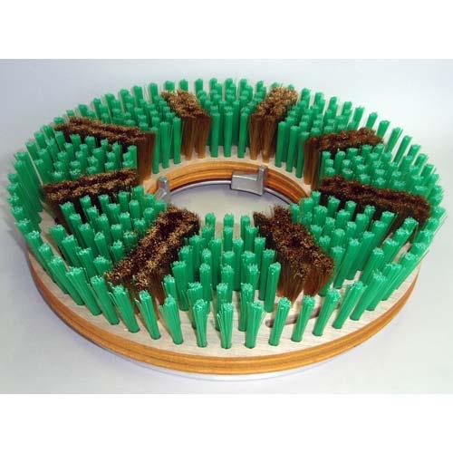 真鍮ブラシ部分がエンボス床面の汚れを洗浄します。ナイロンブラシを間に入れることで、真鍮ブラシを保護します。