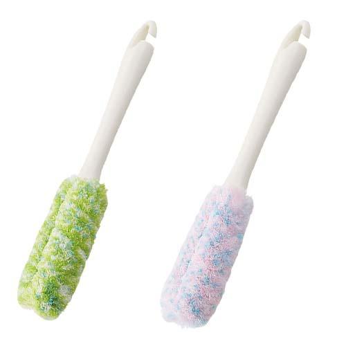 従来のトイレブラシで掃除しづらかった最新式の小便器を独自のW繊維が水だけで汚れを落とします。硬めのブラシ繊維でブラッシングし、アミ目繊維の無数