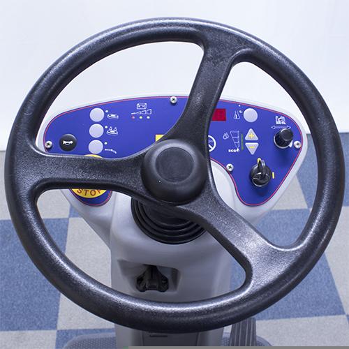 - 搭乗式自動床洗浄機です。搭乗式ながらコンパクトボディの為、150cm幅の通路で転回が可能です。パネル操作は簡単なワンタッチ式で、誰にでも操作できます。